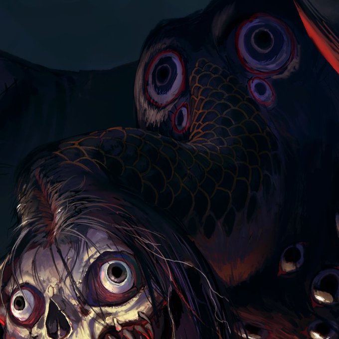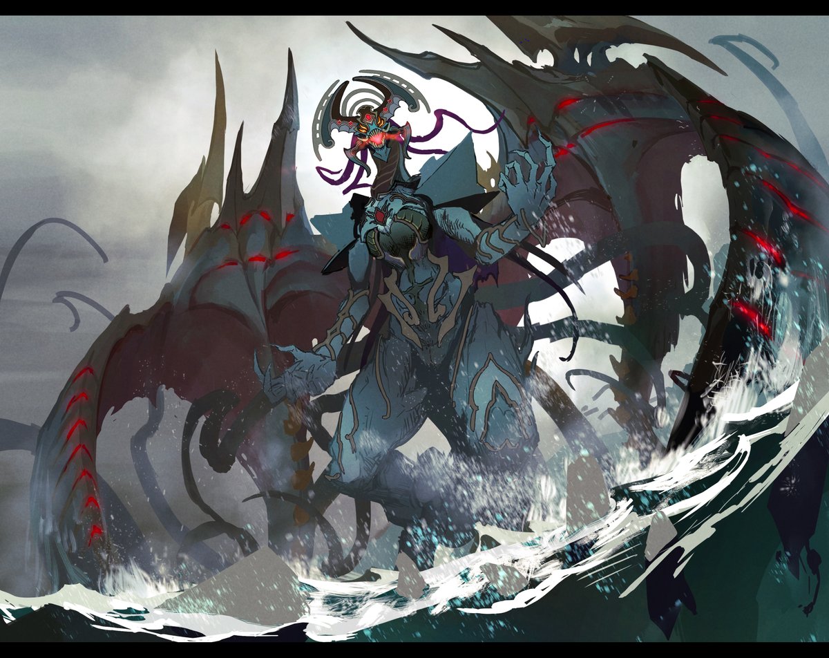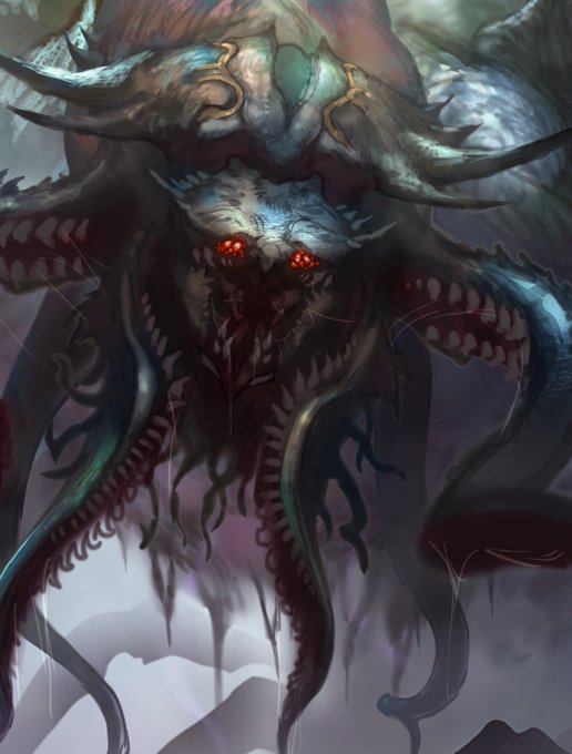 #やじるのえ #途中経過 #monsterdesign #creaturedesign カラーラフこんな感じかな! 仕上げていきます! 神聖な雰囲気の中に例えようの無い恐ろしさを感じられるキャラにしたい🤔