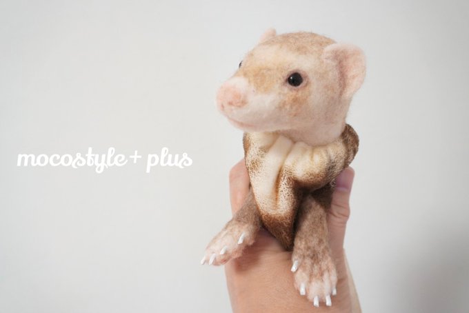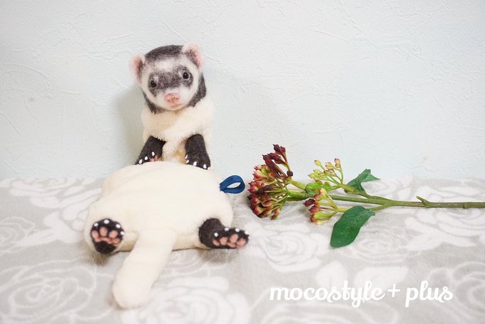 今度は通常サイズでお作りしてます。 小さな顔ばかり見てたから、凄く逞しく見えてしまう(笑) #羊毛フェルト #羊毛フェルト作品 #フェレット #オーダーメイド #うちの子オーダー #ぬいぐるみ #フェレットぬいぐるみ #にぎにぎフェレット #通常サイズ #ハンドメイド #モコスタイルプラス
