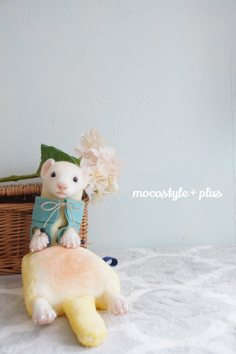 間が空きましたが、きーちゃんの服は黄色𓇼 この連休中に作業している部屋の壁紙を張り替え中です。 #羊毛フェルト #羊毛フェルト作品 #フェレット #ferret #オーダーメイド #うちの子オーダー #ぬいぐるみ #フェレットぬいぐるみ #にぎにぎフェレット #通常サイズ #ハンドメイド #モコスタイルプラス
