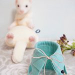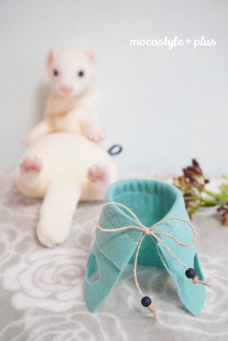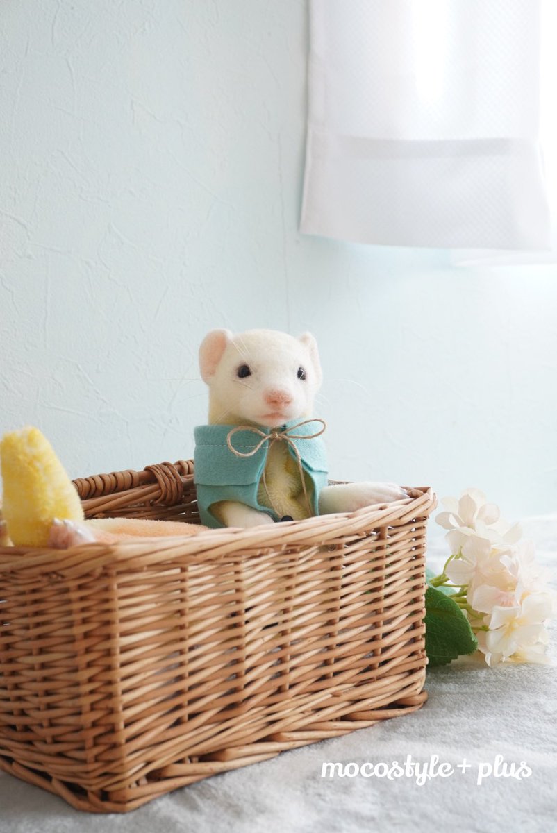 リゼくんの服も水色で決まりました。 いよいよ、最後の仕上げ段階にきましたよー♪ #羊毛フェルト #羊毛フェルト作品 #ニードルフェルト #フェレット #オーダーメイド #うちの子オーダー #ぬいぐるみ #フェレットぬいぐるみ #にぎにぎフェレット #通常サイズ #ハンドメイド #モコスタイルプラス