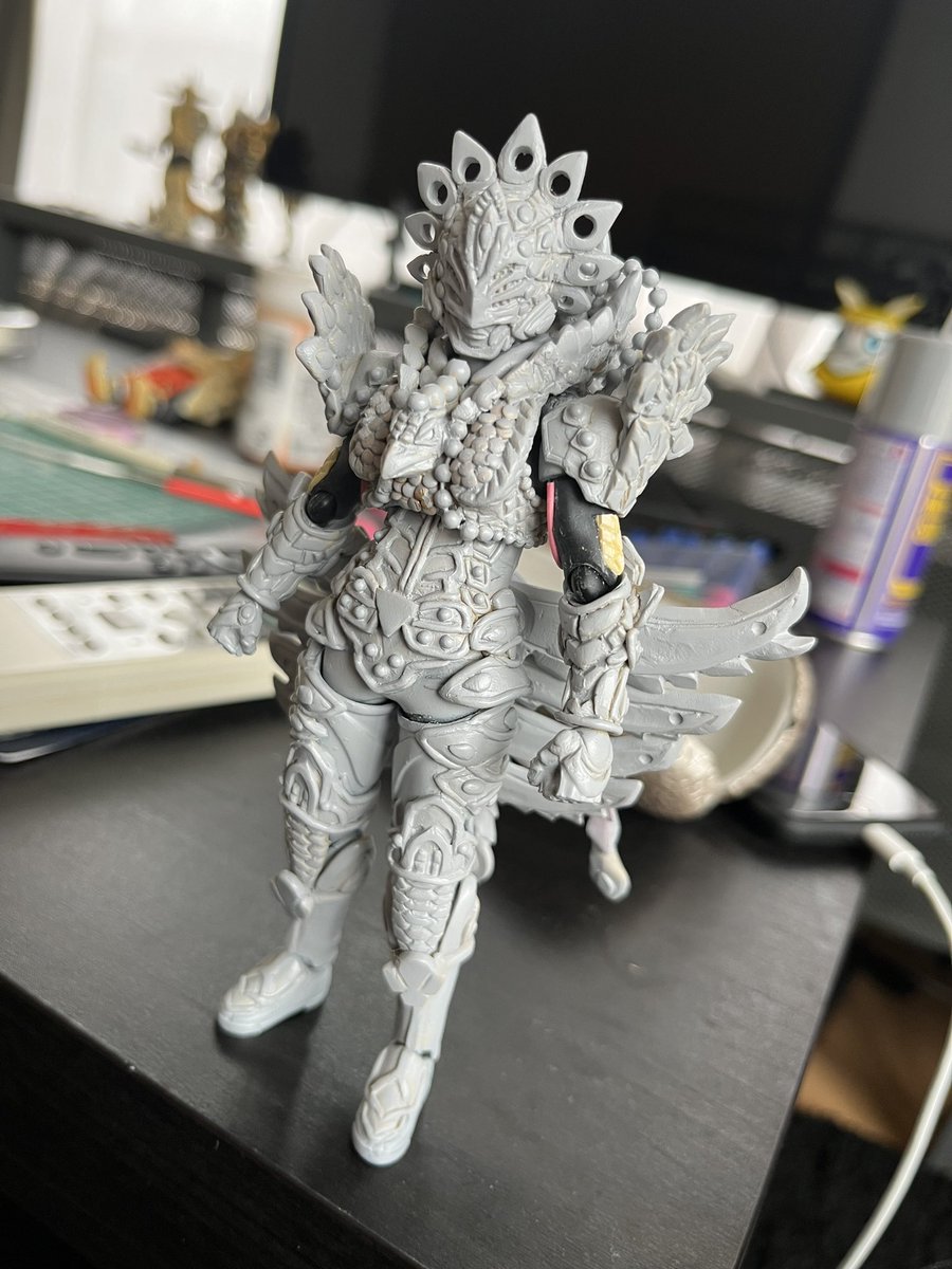 figma仮面ライダーアックス改造 幻獣フェニックス拳メレ完成しました〜! 相変わらずパテとプラ板の塊😎笑 #ニチアサフィギュア改造部 #造ってあそぼ #獣拳戦隊ゲキレンジャー #フィギュアーツ幻獣拳