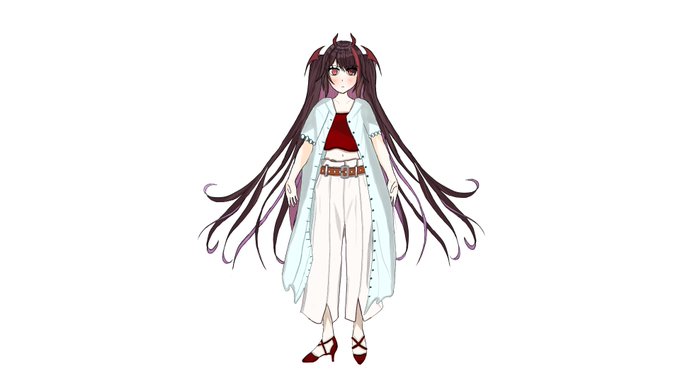 #逢魔きらら新衣装予想 #あくまびじゅつかん イバラの魔族的な感じです。告知の画像に薔薇が使われてたので衣装に取り入れられてるのかな?って考えです。後は、シルエットから想像で描いてます。左右非対称の角は強者の証!(個人の感想です)