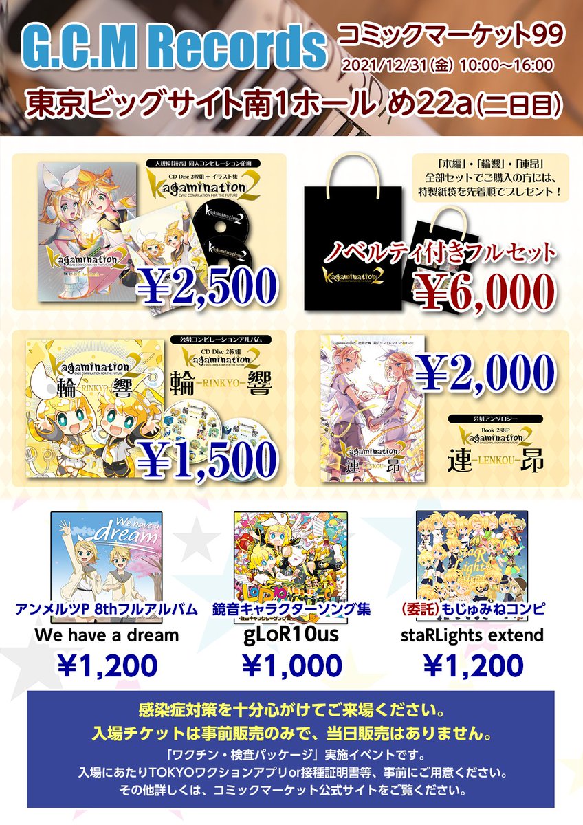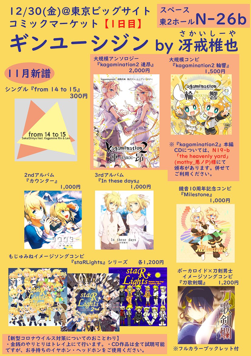 / #C101 本日開催! 『#kagamination2』シリーズ 頒布あります \ ・『kagamination2』本編 東N19b「the heavenly yard」 (mothy_悪ノP) ・『#輪響』『#連昂』 東N26b「ギンユーシジン」 (冴戒椎也) ↓作品詳細はこちら kagamination.net/k02/ よろしくお願いいたします!