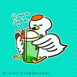 おはスワン♪🦢 まさるくんです! まだまだ暑い日が続きそうですね~ そこで涼しげな僕をお届けです!✨ レトロでエモいメロンソーダですよ💚💚 本日もよろしくお願いいたしまスワ〜ン! #週の真ん中まさるくん #イラスト