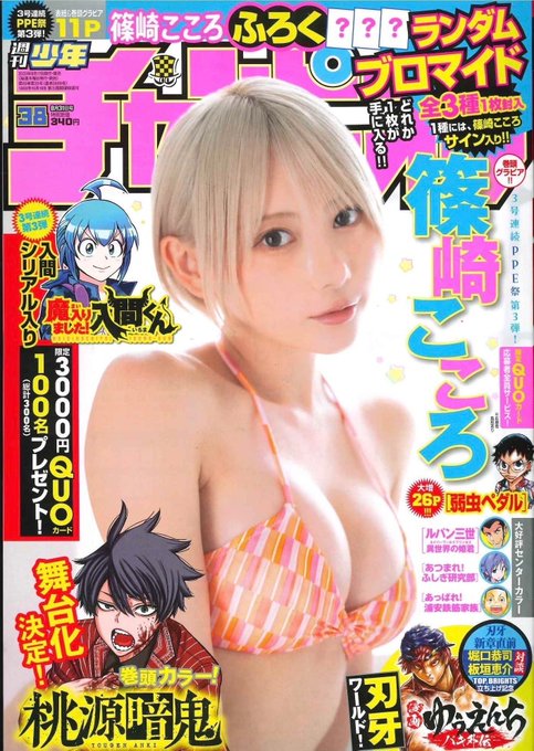 🔥明日、8/17(木)発売🔥 『#週刊少年チャンピオン』 表紙&巻頭グラビアに登場します! 篠崎こころの人生がテーマという すんごいグラビア✨ いつも応援してくれている方も、最近知ってくれた方にも沢山見てほしいなっ📚☺️ なんと付録にはランダムブロマイド! 全3種なのでぜひコンプリートしてね✊