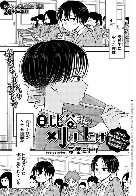 6/30発売の #週刊少年チャンピオン 31号に読み切り『#日比谷さんの刈り上げ』が20P載ってます! ぜひ読んでください! そして巻末アンケートで面白いと言っていただけると嬉しいです!! 刈り上げは良いぞ!!!