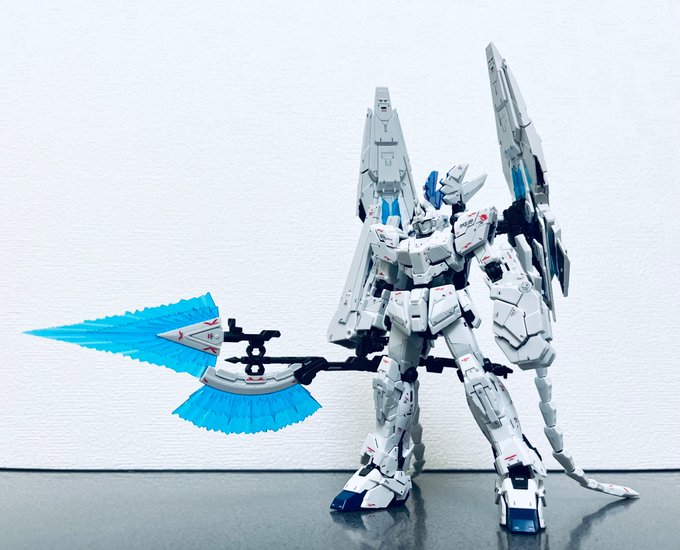 #週末に白い画像を貼って盛り上がろう #ガンプラの画像貼るとRTされると聞いて 悪天候の中 回収に成功したサイコ・ドーガ ↓のHi-νガンダムと並べる為にパールホワイト仕上げとなっています gumpla.jp/rg/977199