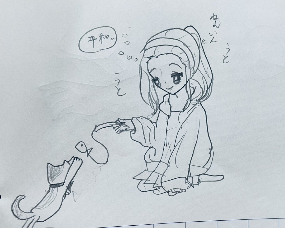 私と私の子猫ちゃんの毎日💕(9歳) #1日1絵 #イラスト #漫画 #コピック #落書き #絵描きさんと繋がりたい #絵師さんと繋がりたい #絵描き練習 #漫画描くのが大好き #歴史人物好き #週末の練習 #鉛筆画 #コピック #読書好きな人と繋がりたい