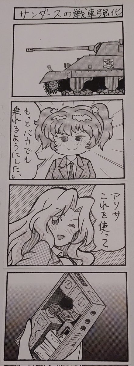 お題「サンダース付属高校」 昔、バカでも撮れるカメラを、バカチョンカメラと言っていた記憶があるな~バカチョン戦車があってもいいな~ #週末ガルパンお絵描き120分一本勝負20221016 #ガルパン四コマ漫画 #週末ガルパンお絵描き120分一本勝負
