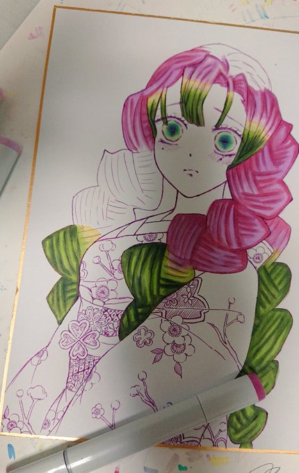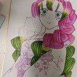 #アナログ絵を流してアナログ民を増やそう #ニジイラ #ペン入れ #進捗どうでしょう2022 うだうだ〜ってしながら( ゚ⅴ゚ ◎) ここまで描けました(>ω<〃)~♡ そろそろ寝る😴とします( 💜´꒳`*) 今日起きたら柄入れがんばります🔥💪(>ᴗ<๑)🙏💓❤💕ところで… 冨岡さんに見えます⁉️この線画🌸