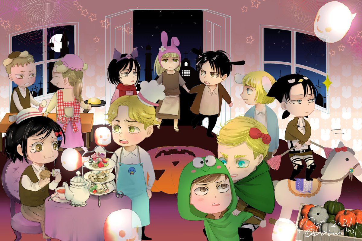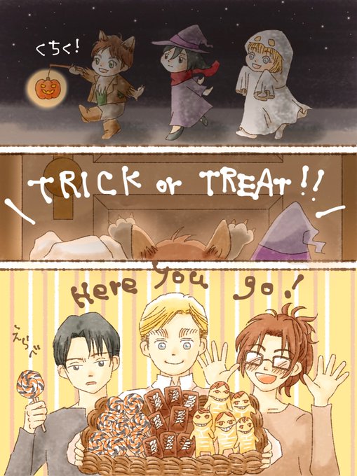 からの……GOOOOOOO!!!🎃👻 ハンジさん担当/無垢クッキー エルヴィン担当/自由の翼チョコ リヴァイ担当/ぺろキャン なんだか素敵タグが生まれてる! #進撃のハロウィン #ハッピーハロウィン #ハロウィンイラスト2021 #halloween #aot #shingeki