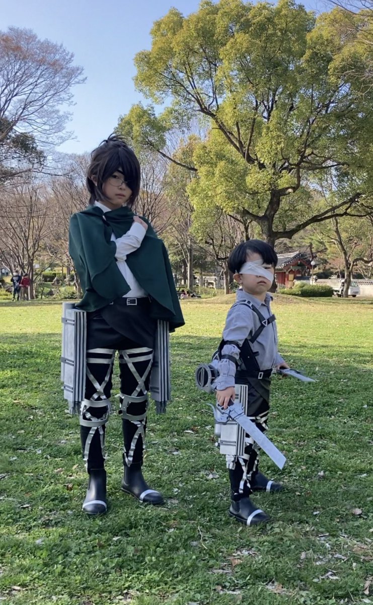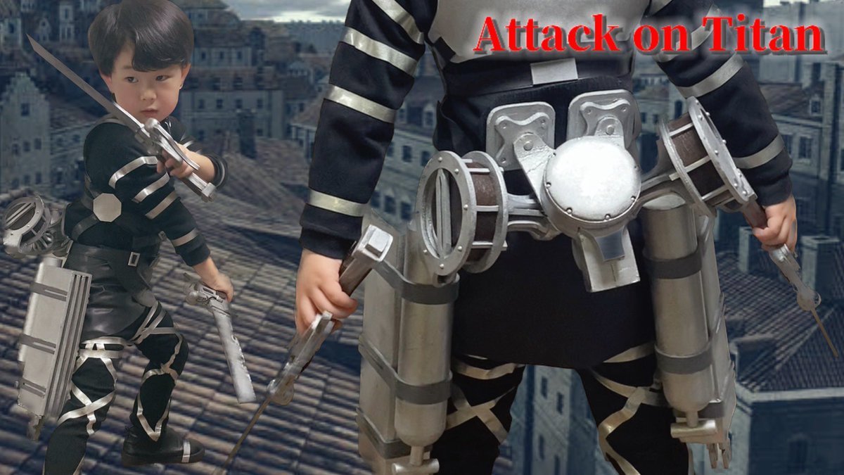 YouTubeに動画アップしました! お母さんが苦心して作り上げた 子供用新型立体機動装置の メイキング動画です! 動画の長さはなんと2分! 2週間を2分でお送りしております! #進撃の巨人コスプレ