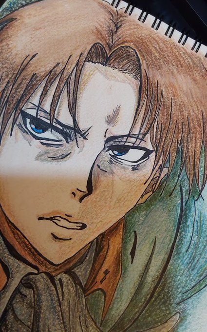 難得的新作😭 這次適用美勞老師送的畫本畫的~謝謝老師💗 最近在追進巨~ 里維真的好帥rrrrrr!! 推薦大家~ #進擊的巨人 #里維兵長 #attackontitan #手繪 #色鉛筆画 #YUZI的繪畫工作室