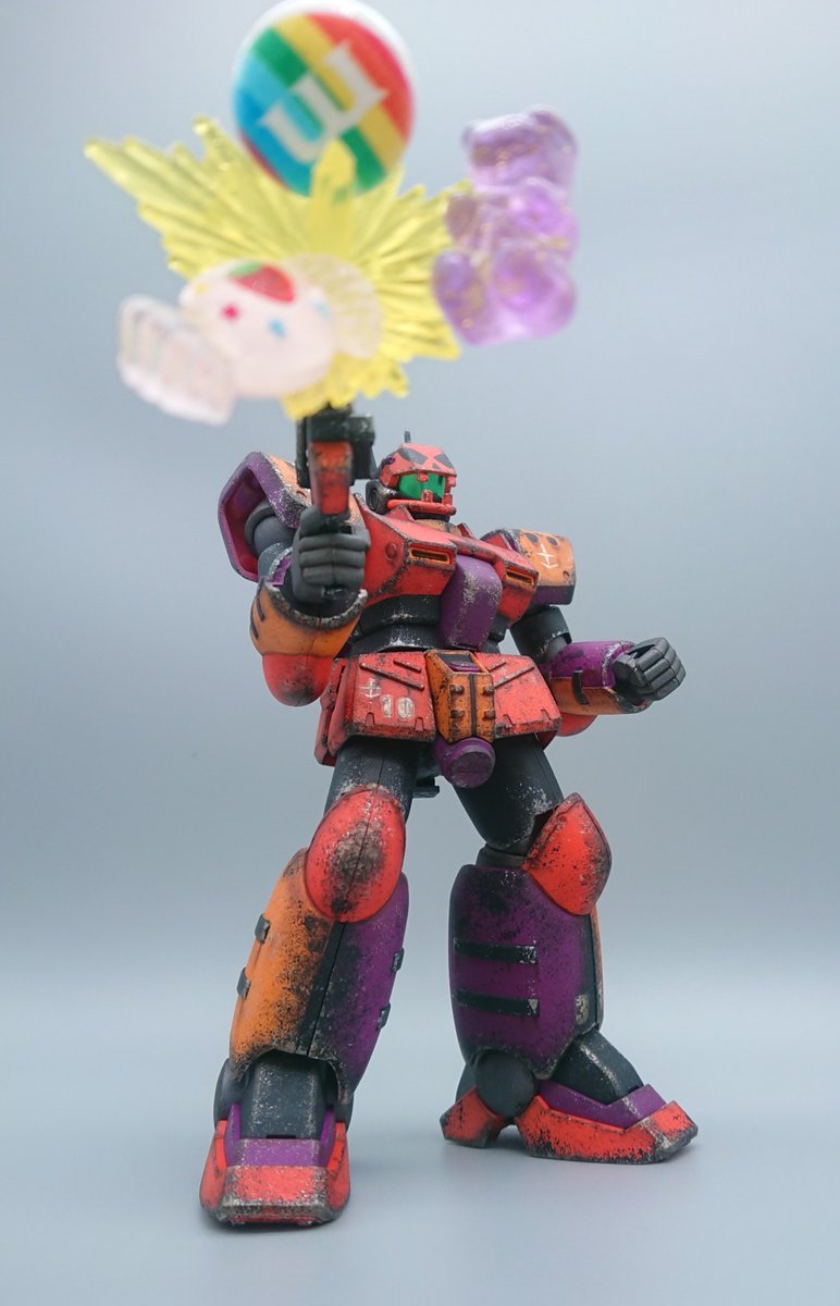 今年のハロウィンガンプラは… 量産型ガンキャノン(パンプキン・ヘッド) 「Today is a truce.」(今日は休戦だ。) 銃弾は、チョコ、キャンディー、クマちゃんグミ #ガンプラはどんな自由な発想で作っていいんだ #ハロウィン #ガンプラ #量産型ガンキャノン #遊び心