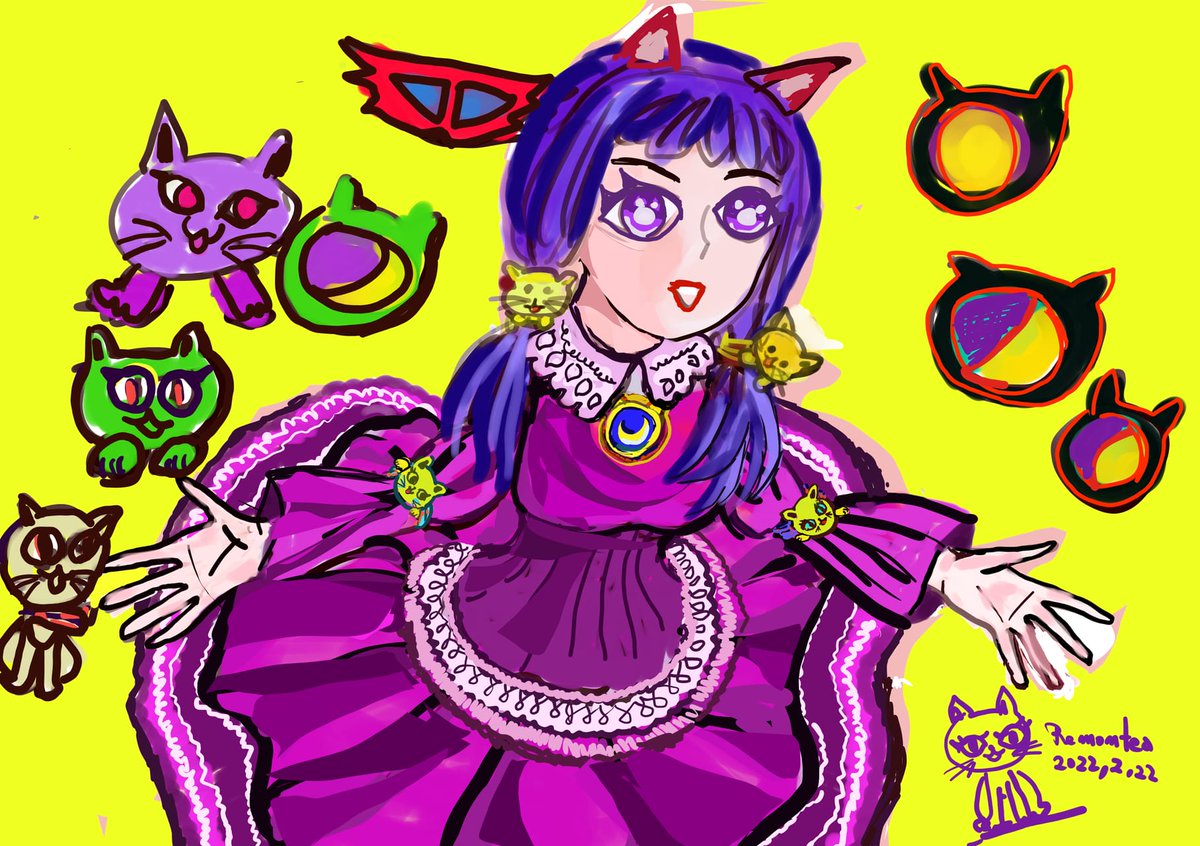 キャッツシスターズ「背景は猫顔ムーンペンダントと、猫顔かざり。」 medibang.com/picture/y82202… #ARTstreet #MediBang #女の子 #落書き #夢クリエイト #遊び心
