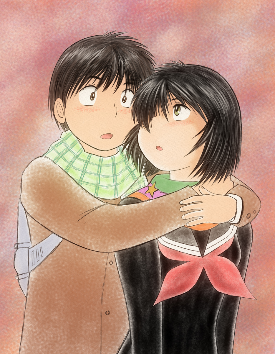 #過去絵リベンジャーズ マフラー絵探してたら出てきたので 気持ち程度、加筆しました。 自分の絵では珍しい2ショットでございます 2014年のクリスタ始めて3〜4ヶ月頃のもの。 彩色はほぼクレヨンでした(笑) まだ連載終わってなかった頃ですね(ФωФ) #謎の彼女X #卜部美琴 #MysteriousGirlfriendX