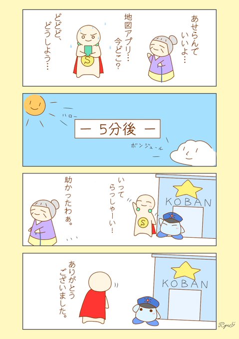 4コマ「道案内2」 昨日の続きです。 #ゆるいイラスト #イラスト #4コマ #4コマ漫画 #漫画 #イラスト好きな人と繋がりたい #イラスト好きさんと繋がりたい #イラスト好きと繋がりたい #すーとうーとかいじゅうくん #すーくん #ポリスくん #道案内