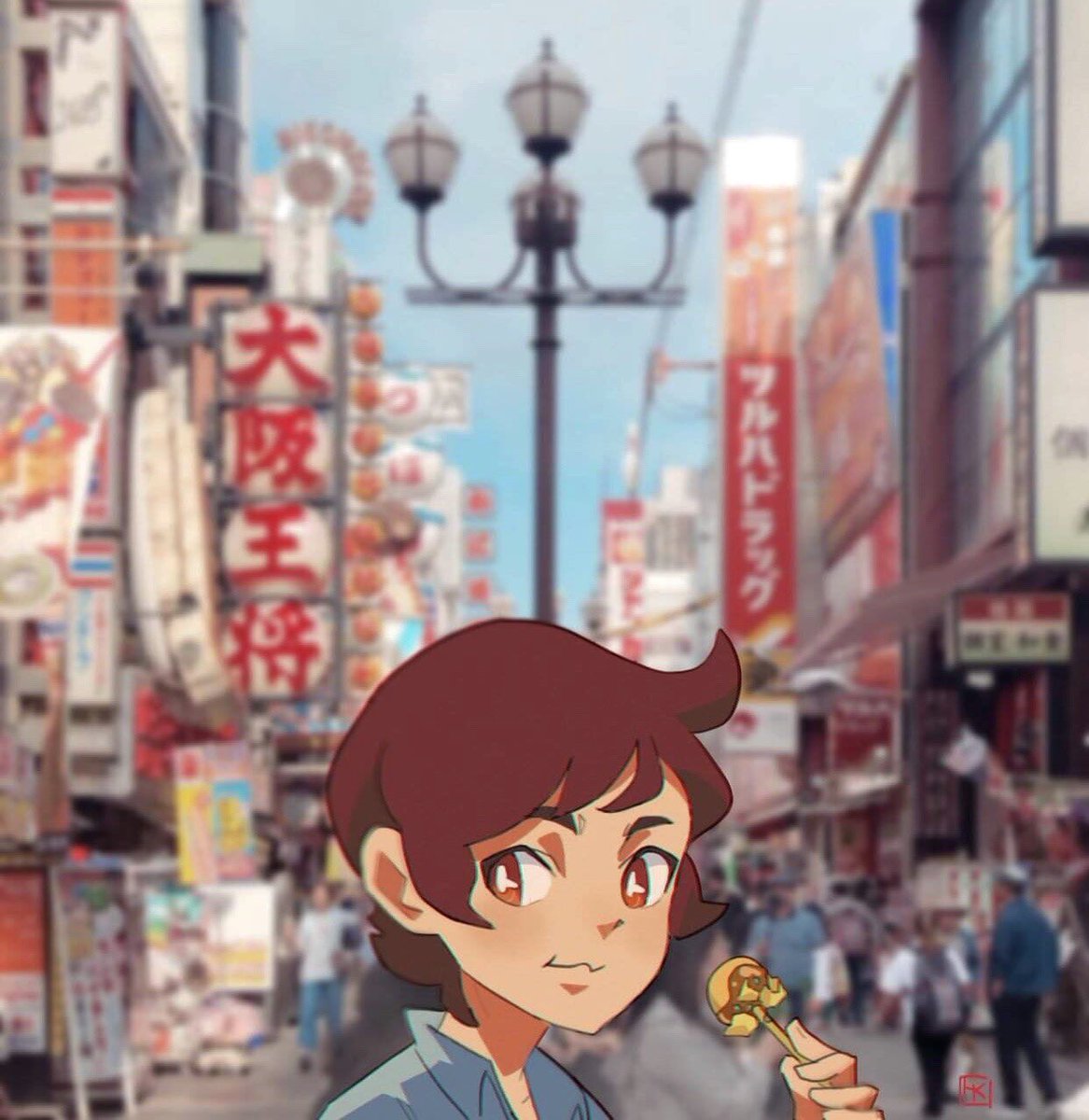 道頓堀グリコの看板と!毎日オムライスくん355日目。 #オムライス #ゆるキャラ #illustration #絵 #illustrations #illustrator #毎日オムライスくん #オムライス町 #絵描きさんと繋がりたい #大阪 #道頓堀 #たこ焼き #グリコ
