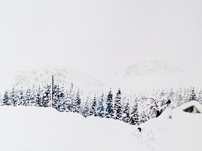 本日午前中の進捗状況。 年明け早々微風邪をひいた長女、今日からやっと登園。 しばしの自分の時間。 ・ ・ #続き #途中経過 #水彩画 #遠景 #雪景色 #絵画 #workinprogress #watercolorpainting #drawing #lovepainting #landscape #snow #とかいところから #tokaitoko