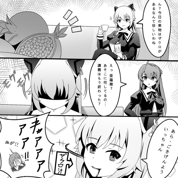 「ちょっと... 亜羅椰!! 何するの? 放しなさいよ... 「ふふっ、もう逃げさせないわ。このままいっちゃんをバースデーケーキに、食っちまいますわよ💕 🦁亜羅椰ちゃん お誕生日おめでとう🎊🎉 #遠藤亜羅椰生誕祭2022 #遠藤亜羅椰 #田中壱 #アサルトリリィ #アサルトリリィ_FA