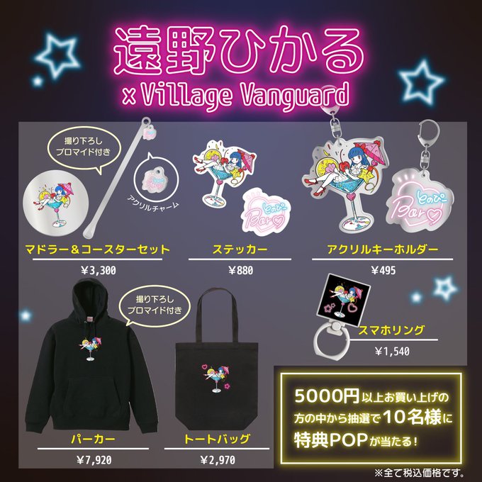 🌟遠野ひかる ×ヴィレヴァン🌟 声優の #遠野ひかる さん ( @hikaru_tono )とVVの コラボグッズのイラストを担当させて 頂きました💖レトロポップで可愛い とのぴーBar 🍸🌙是非チェックしてみてください♪ 本日~1/3(月) 23:59まで 受注生産にて販売されます✨ vvstore.jp/feature/detail…