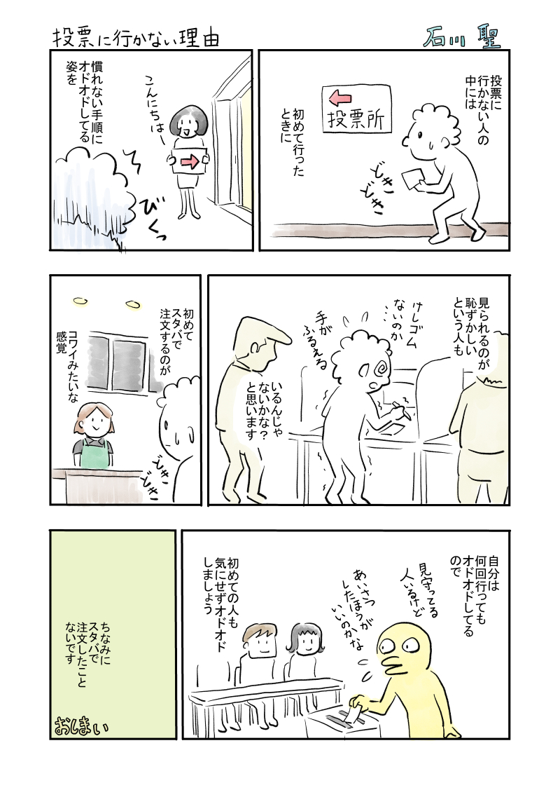 2023年4月9日(日)は統一地方選挙ですね! 「投票したことないから行きにくいな…」って人もいるかも!と思って、超ざっくりした投票の仕方の漫画描いてみました✨ 散歩がてら選挙に行こう〜!! #選挙に行こう #選挙 #漫画が読めるハッシュタグ