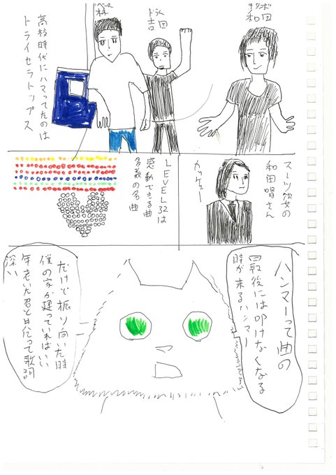 これがオレの音楽道第4話 トライセラをテーマにしてます 和田唱さん(妻はあの上野樹里)、 全然似てる風に描けなくて泣く #これオレ #漫画が読めるハッシュタグ #音楽好きさんと繋がりたい #邦ロック好きな人と繋がりたい #拡散希望 #和田唱 さん #平野レミ #TRICERATOPS #エッセイ漫画