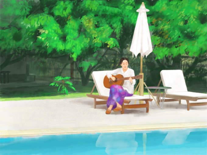 【自主制作】 「プール」という邦画のワンシーンを描きました。どのシーンも構図が素敵でした。 #illustration #art #artwork #adobefresco #watercolorpainting #watercolor #movie #japanesemovie #pool #fashion #イラスト #イラストレーション #邦画 #映画 #プール #水彩