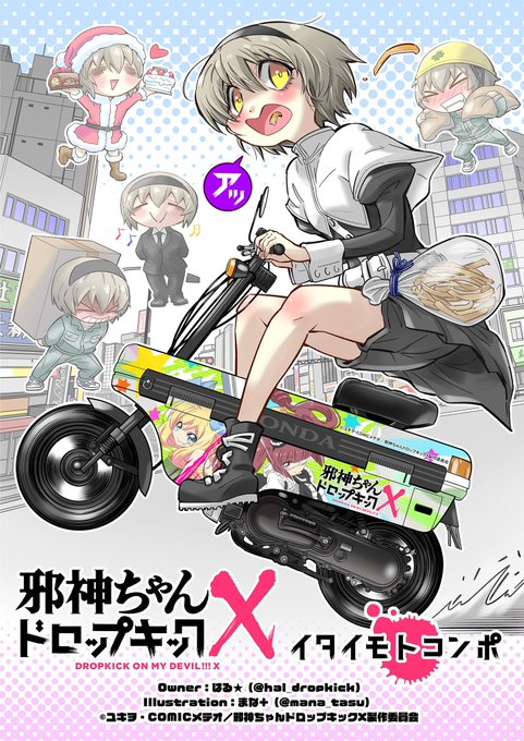 来たる5月4日(木)の #邪神ちゃんフェス inすみだ産業会館にて展示される はる⭐️( @hal_dropkick)さん制作の #邪神ちゃん痛モトコンポ のイメージイラストを描かせていただきました #邪フェス 当日はポスターになるので痛モトコンポ共々ぜひ見に来て下さいね😇 #邪神ちゃんドロップキック #モトコンポ