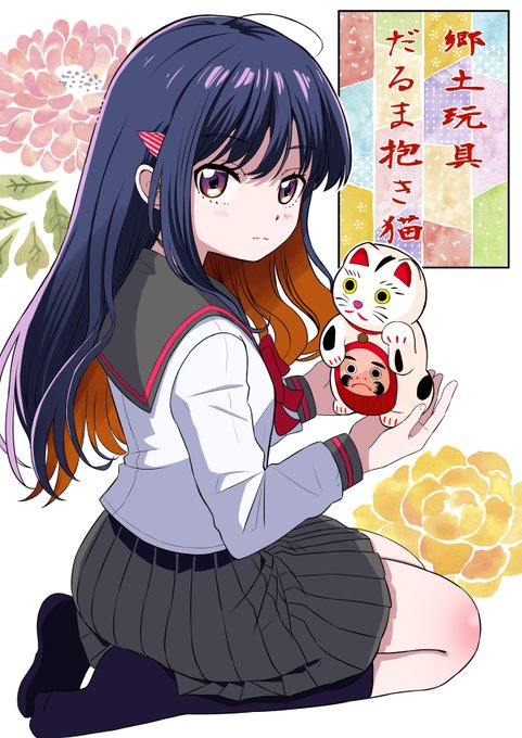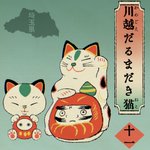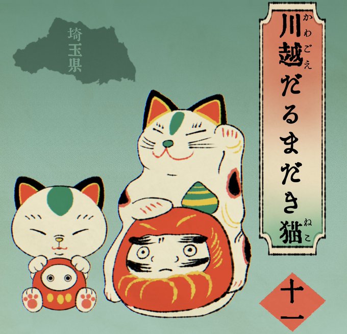 #ゆるかわ郷土玩具図鑑 11人目は埼玉県出身の『川越だるま抱き ねこ』くんだニャ😸 彼は明治時代に生まれていて、約100年の長い歴史を持っているニャ! #郷土玩具 #デザインフェスタ #イラスト #illustrationart #春の創作クラスターフォロー祭り #レトロ #絵 #猫好き