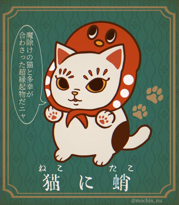 #ゆるかわ郷土玩具図鑑 6人目は山形県出身の『猫に蛸』だニャ😸 私は、魔除けの〝猫”と多幸の〝たこ”が合わさった超縁起物で、とても有難い存在なんだニャ!😼✨ #郷土玩具 #デザインフェスタ #イラスト #illustrationart #春の創作クラスターフォロー祭り #レトロ #絵 #猫好き