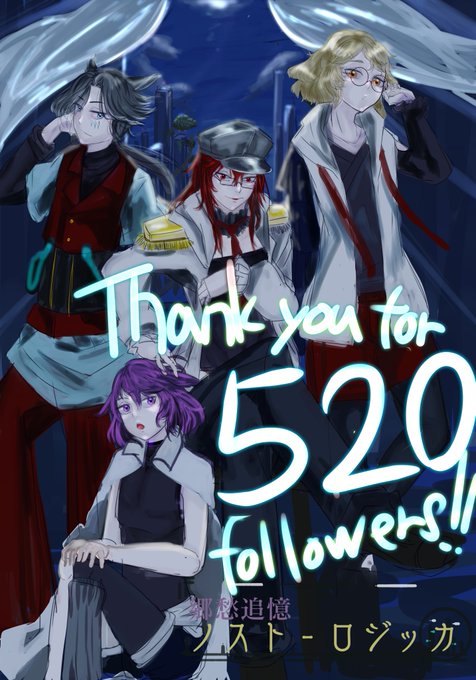 フォロワー様500名記念絵完成しました!! 今回はD試験小隊の四人にお願いしました! 今後も楽しく精進していきます! どうぞ今後ともよろしくお願いいたします!! #郷愁追憶ノストロジッカ #イラスト好きな人と繋がりたい #創作 #illust #オリジナル