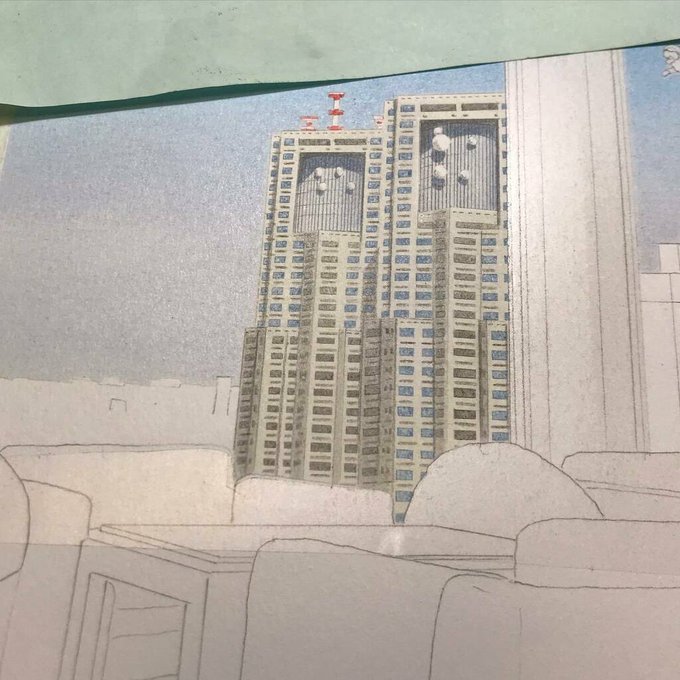 都庁ビルを色鉛筆画で描いていくのはとても手間がかかる😅 #色鉛筆画 #イラスト #都庁 #coloredpencil #illustration instagr.am/p/CAm2KaOnnPg/