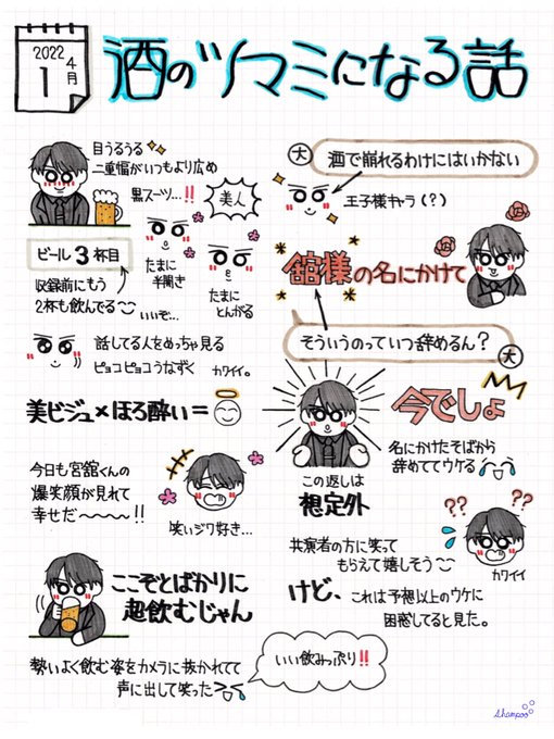 4月1日放送の「酒のツマミになる話」をまとめました✏️ 今回も宮舘節が炸裂してて面白かった✨他の出演者さんを含め、出てくるエピソード1つ1つが強烈すぎる🤣改めて宮舘くんをゲストに呼んでいただきありがとうございました! #酒のツマミになる話