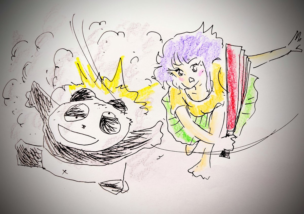 暑さでおかしくなったので昭和平成令和と不変の「叩けば直る」法則に則って修理を試みたが、ホコリが出ただけだった。 #イラスト #絵描きさんと繋がりたい #酷暑 #叩けば直る #叩けばほこりが出る #叩けばほこりが出るパンダ