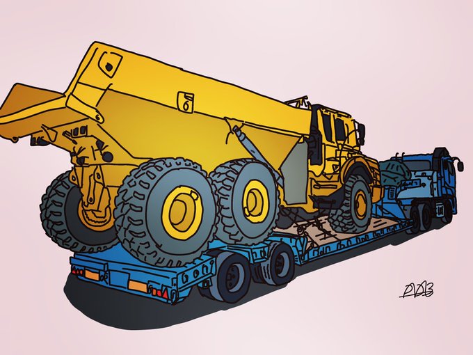 この前の落書きに色塗ってみました👨🎨 . . #イラスト #落書き #絵 #重機 #アーティキュレートダンプ #ダンプ #トラック #低床トレーラー #トレーラー #働く車 #車 #イラスト好きな人と繋がりたい #絵描きさんと繋がりたい #lineスタンプ #illustration #picture