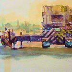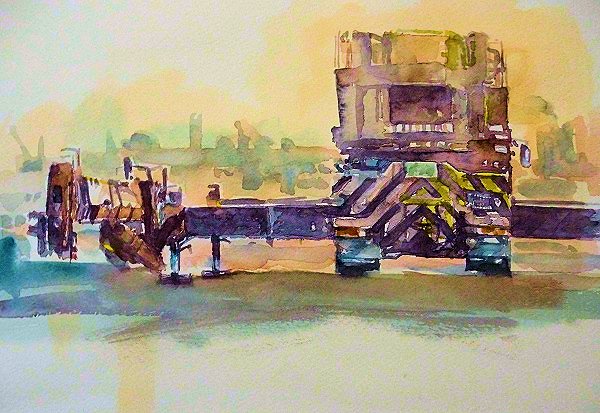 「はたらく建機」#建機 #重機 #水彩 #透明水彩 “Crane maintenance” #art #landscape #sketch #drawing #painting #illustration #watercolor #aquarelle