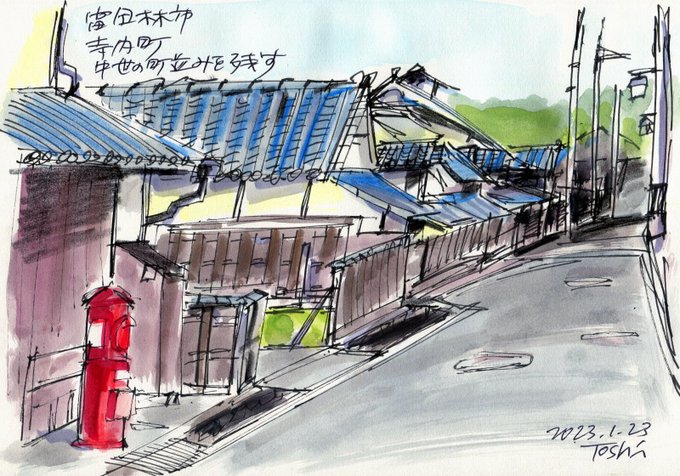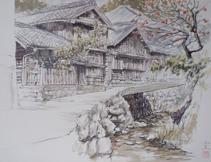 秋のスケッチ様々 A series of Autumn sketches. #花沢の里 #焼津市 #重要伝統的建造物群保存地区 #川根本町 #茶畑 #青部駅 #富士山 #柚野の棚田 #棚町宜弘 #水彩スケッチ #ファブリアーノ水彩紙 #watercolorpainting #watercolorsketches #japaneseartist #autumn #宝永山 #水ヶ塚