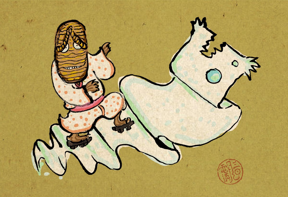 おはようございます 一反木綿サーフィンする ぞうりお化けちゃんです 今日も素敵な一日になりますように☺ #鬼 #ゲゲゲの鬼太郎 #野沢雅子 #いいねかRTで気になった人フォローする #人外が好きな一次創作者フォロー祭 #拡散希望 #妖怪 #初夏の創作クラスタフォロー祭り #絵描きさんと繋がりたい