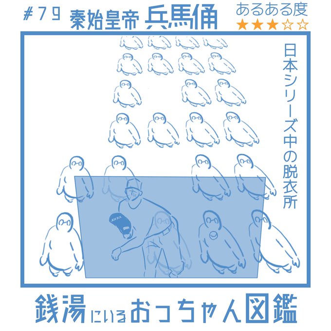 ♨️銭湯のおっちゃんシリーズ♨️ #あるあると思ったらRT #あるある #銭湯 #日本シリーズ #野球観戦 #銭湯男子 #サウナ #サウナー #公衆浴場 #兵馬俑 #秦の始皇帝 #sento_ojisan #懐かしい #今月描いた絵を晒す #ヤクルトスワローズ