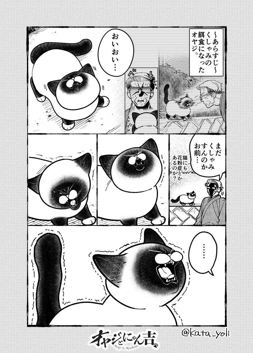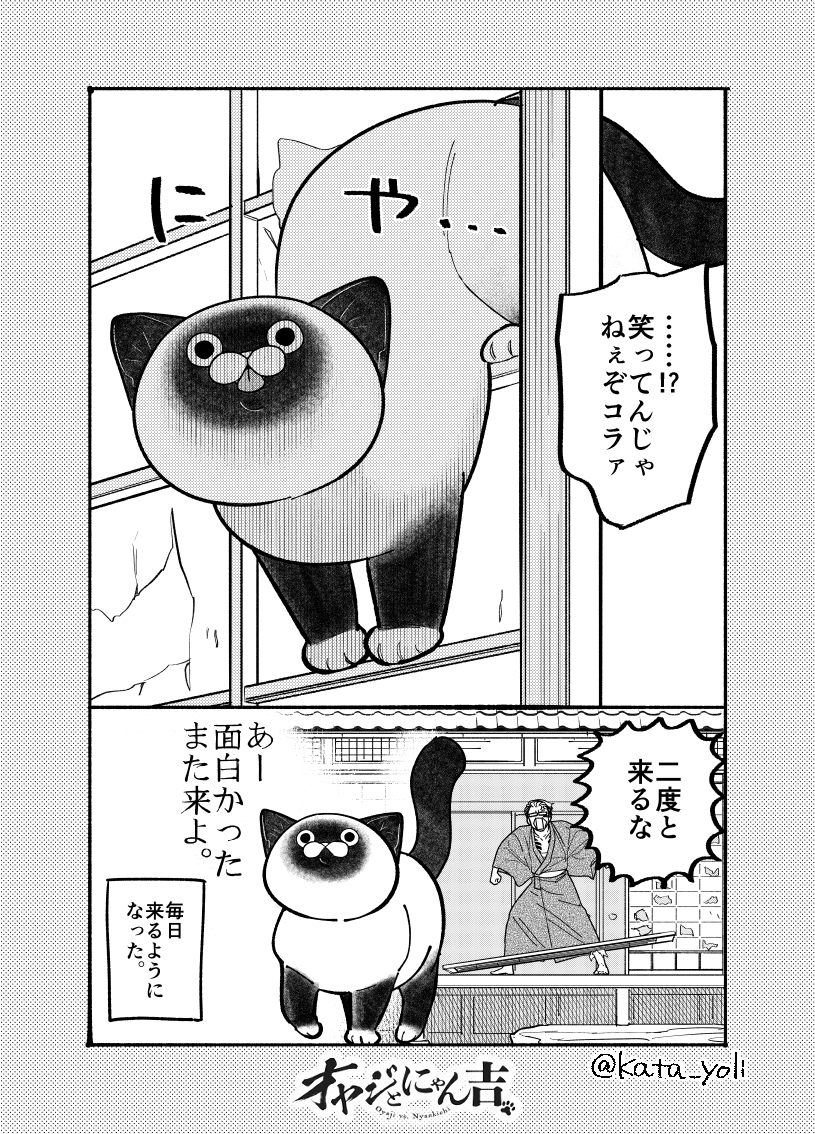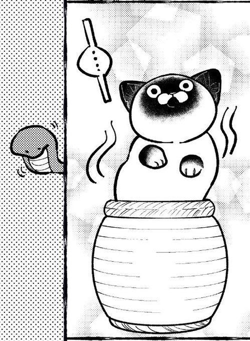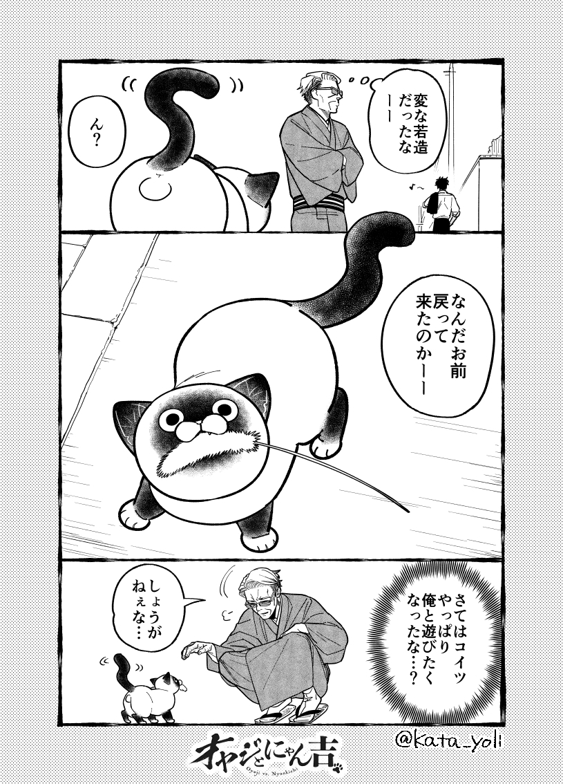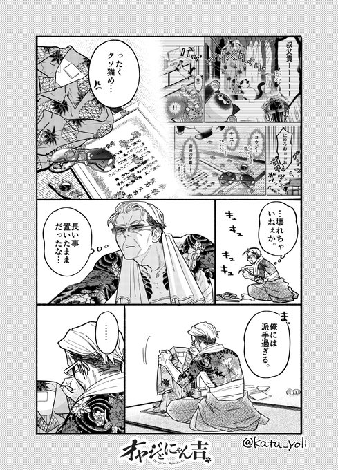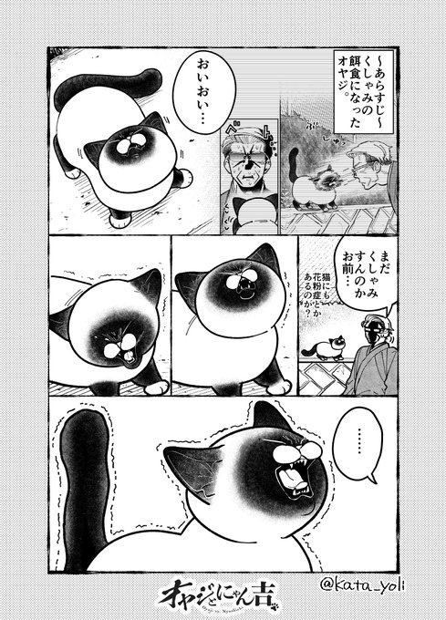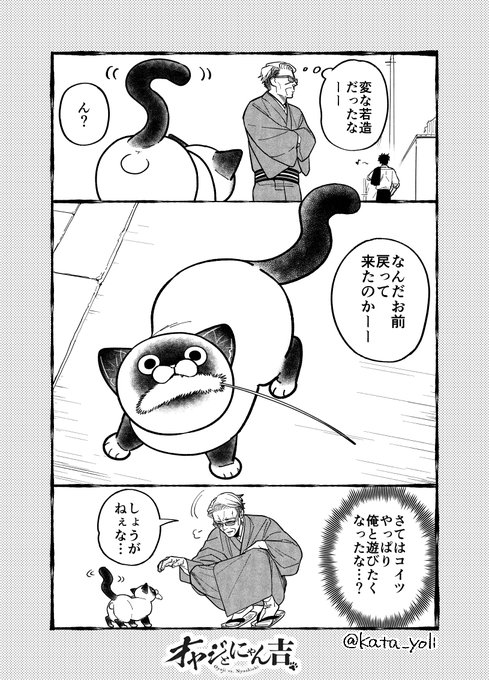 「#オヤシとにゃん吉」👨🦳🐾🐱 11話おまけが更新されま 🐾した! 壺にゃん吉にハマってし🐾まったオヤジ…? 🐾 よろしくお願いします! 🐾 🐾 #猫 #野良猫 #猫のいる暮らし #漫画が読めるハッシュタグ sunday-webry.com/episode/485600…
