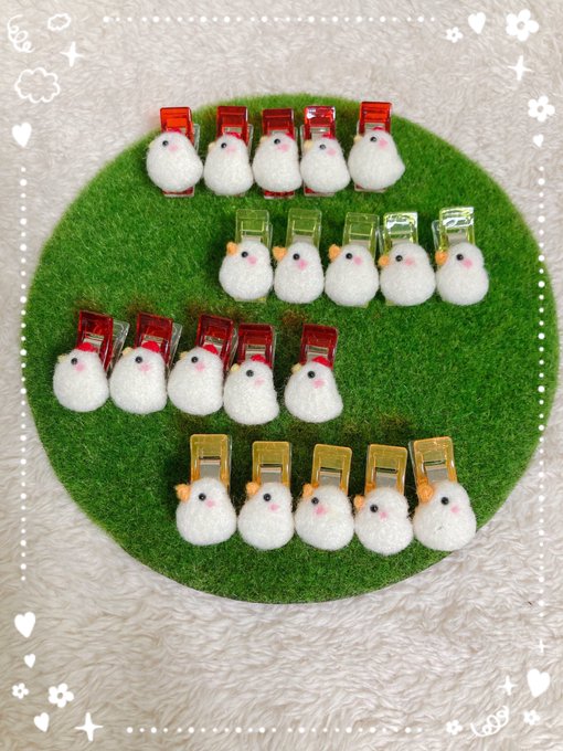 #野鳥とふくろうマルシェ に向けて✨ ミニクリップはこちらの2種類✨ 🐓にわとりと、あひるです。 おんなじ顔はありません。 お気に入りの子を見つけてください。 ✨😆✨ #羊毛フェルト #Rookの仲間たち #にわとり #アヒル #クリップ #ことりカフェ