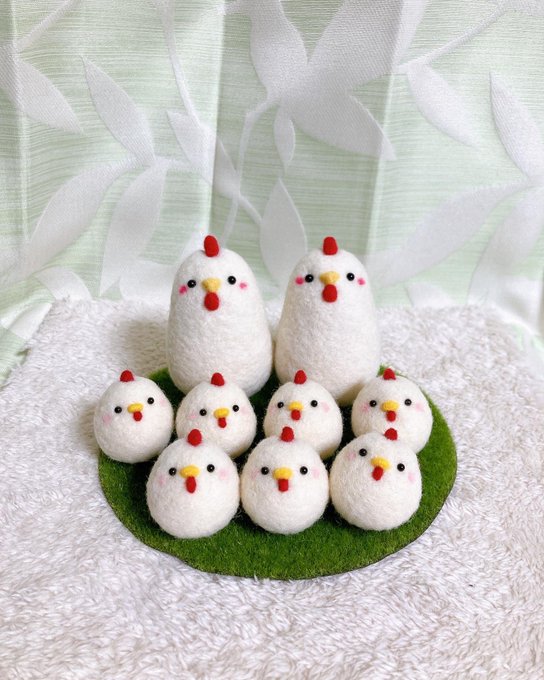#野鳥とふくろうマルシェ に向けて✨ コッコ軍団 出動~🐓✨ てのひらにちょこんと乗る まんまるタイプと、ちょっと大きめの2種類🐓✨ #羊毛フェルト #Rookの仲間たち #鶏 #ことりカフェ