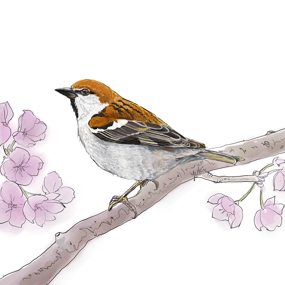 ニュウナイスズメを描きました。よく見るスズメさんとどこが違うかな? #野鳥観察 #バードウォッチング ニュウナイスズメについて詳しくはブログにて mililie.com/nyunai1/