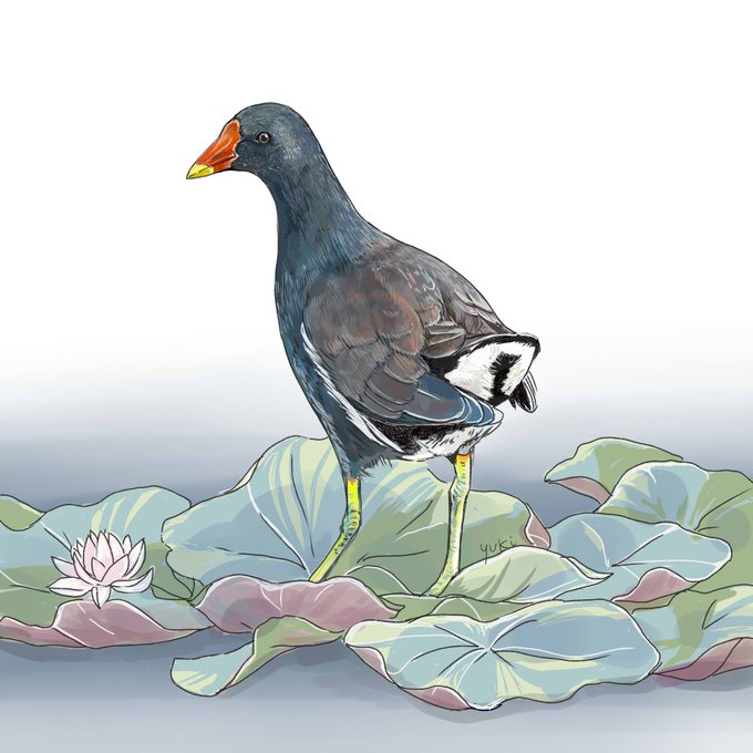 バンを描きました。 バンって、陸に上がってるとこ見る機会少ないですがビックリなくらい脚が立派!!! でも水掻きはないんだよー。 (オオバンにはあるけどね。 ) 詳しくはバンの生態についてのブログ記事にて mililie.com/ban/ #野鳥観察 #バードウォッチング