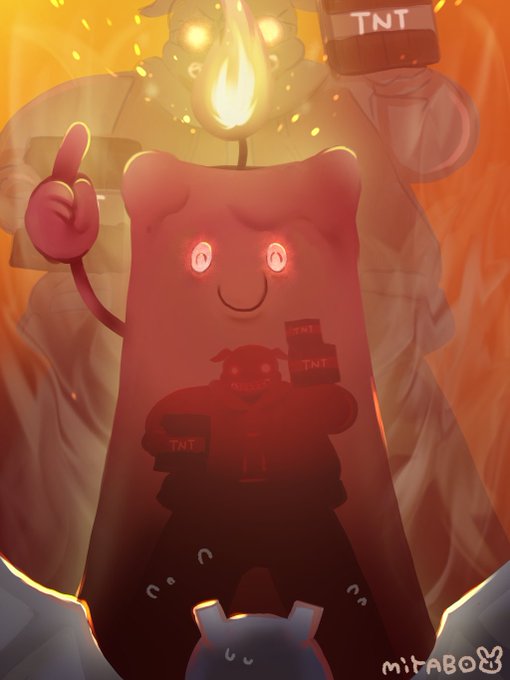 マグマだるまヤバすぎでは…!?でもさんちゃくんと言う強い味方(被害者)がいるという事でどうなんるんだろうワクワク!よんちゃんくwの鬼畜エンドラ楽しみです✨ #ドズル社アート #誰でも見れますねぇ #ぴくちゃんく #金曜キラキラ鬼畜の日