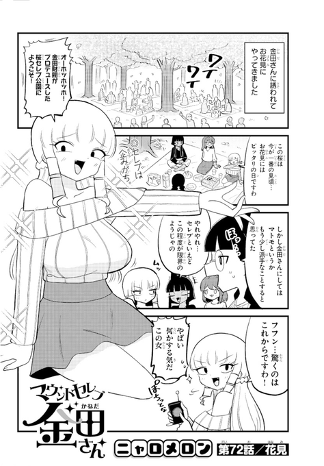 「マウントセレブ金田さん」第72話がマンガクロスにて公開されました!花見マウントで気持ちよくなるお嬢様回です mangacross.jp/comics/kaneda/… #金田さん #マンガクロス