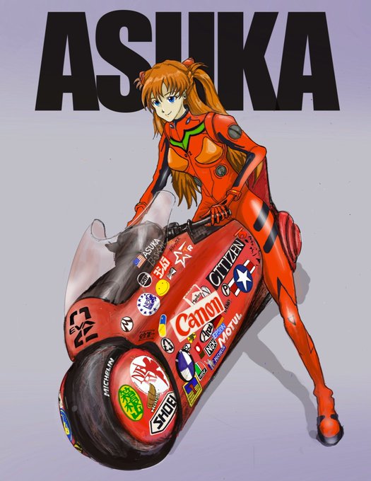 インスタでの過去作品ですがTwitterでは初投稿です😃AKIRAの金田のバイクにエヴァのアスカを乗せてみました😆 このコラボ探せば結構あるんですが、バイクはレーサー仕様に改造してます😊 #新世紀エヴァンゲリオン #アスカ #イラスト #AKIRA #金田のバイク #イラスト好きと繋がりたい