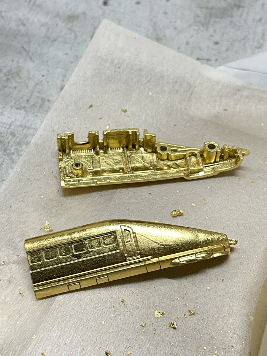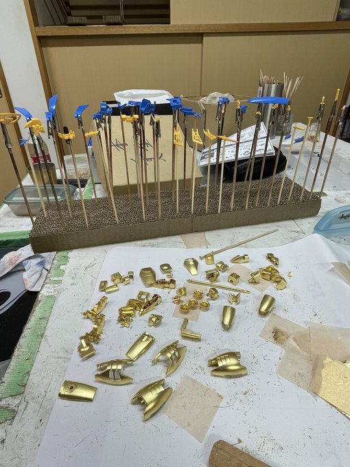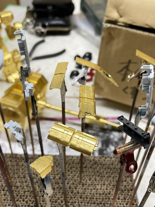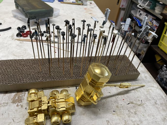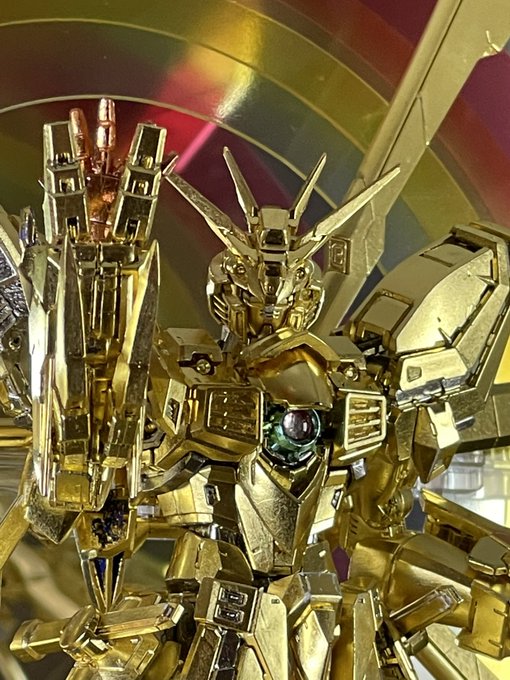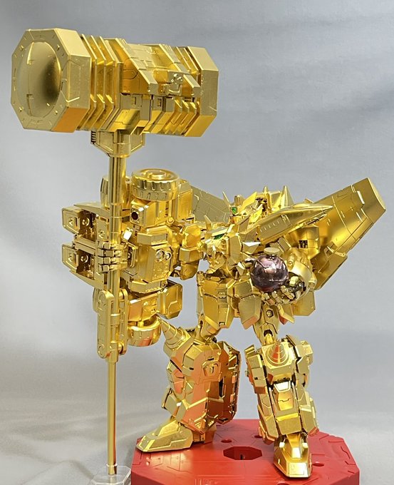 #RGガオガイガー ライナーガオーの純金箔押し完成しました。 よくある質問・感想で『剥げませんか?』と言われますが、市販の箔押し液とは違い可動させても簡単には剥げません。#金箔 twitter.com/i/web/status/1…