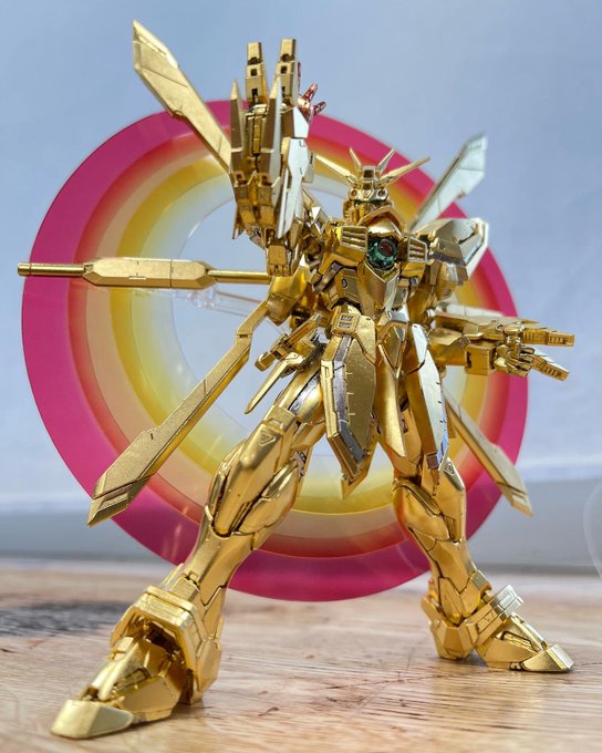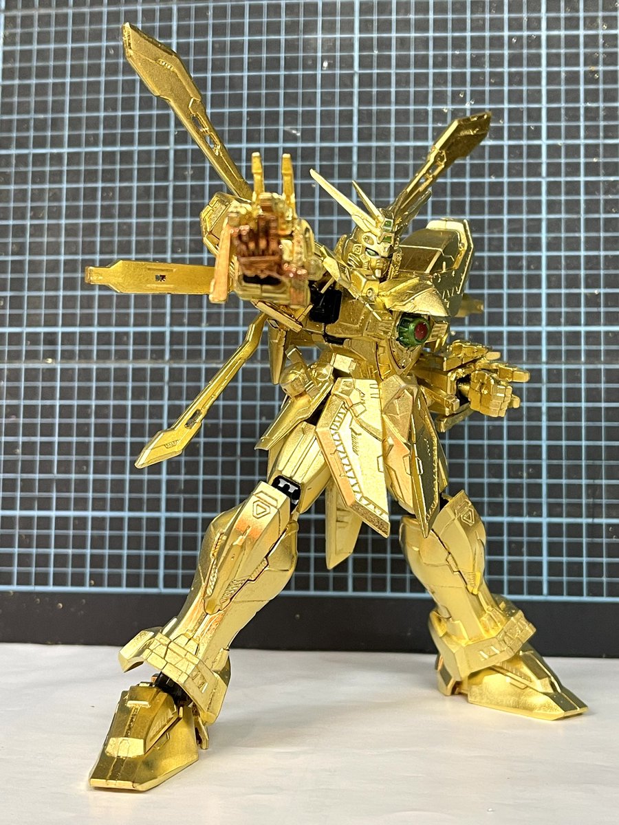 #アナタが頑張ったプラモ見せて 純金箔押しRGゴッドガンダム。 発売前の下準備から発売当日の慌ただしさ。 金箔工芸をはじめて最も短く熱い製作でした。(製作時間・約24h)#Gガンダム #金箔